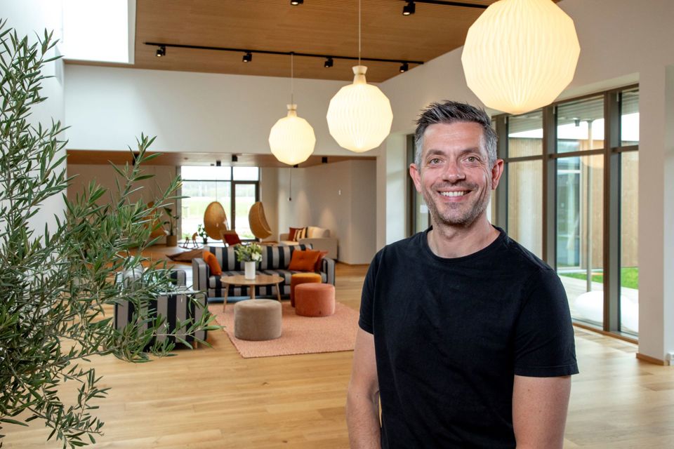 Michael Voldsgaard Nielsen byder velkommen indenfor i det nybyggede 1600 kvadratmeter store Ronald McDonald Hus. Huset er placeret 100 meter fra den bygning, som kommer til at huse børne- og ungehospitalet på det nye OUH i Odense.